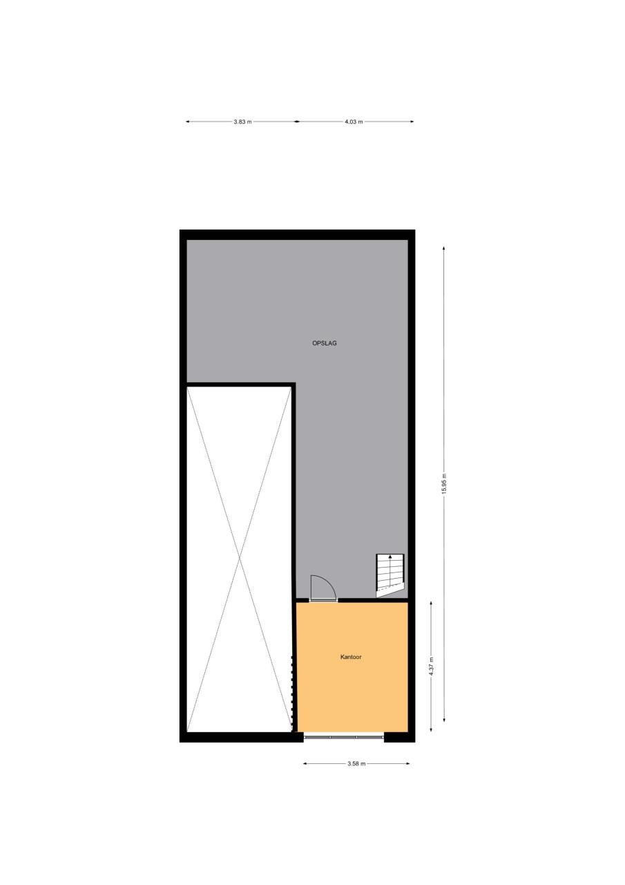 De vrije hoogte bedraagt 607 cm en onder de verdiepingsvloer ca. 289 cm.