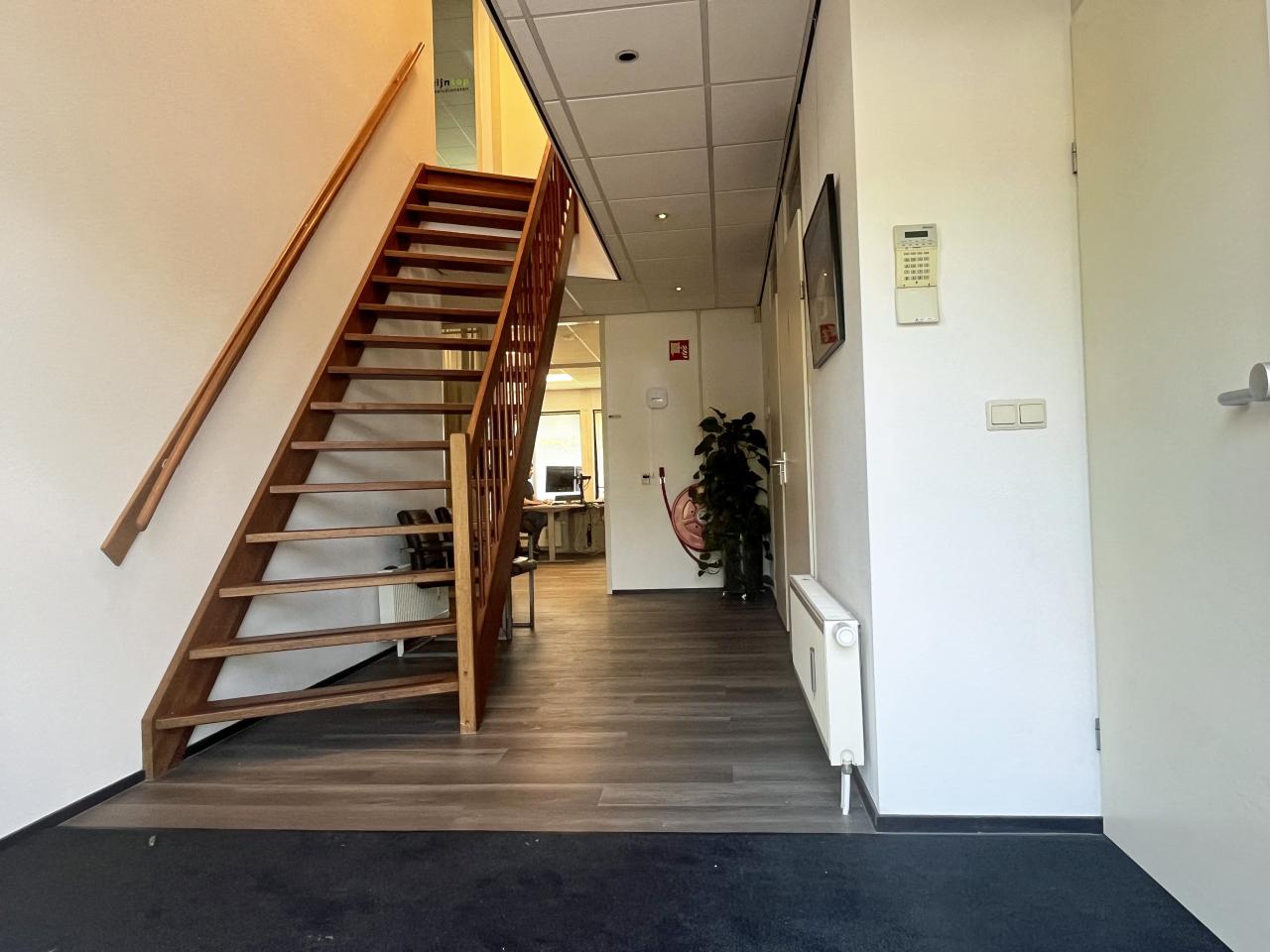 Op de verdieping bieden wij een kantoorruimte aan van ca. 33 m². De kantoorruimte is voorzien van LED verlichting en beschikt over energielabel 'A'.