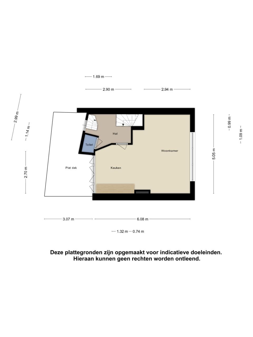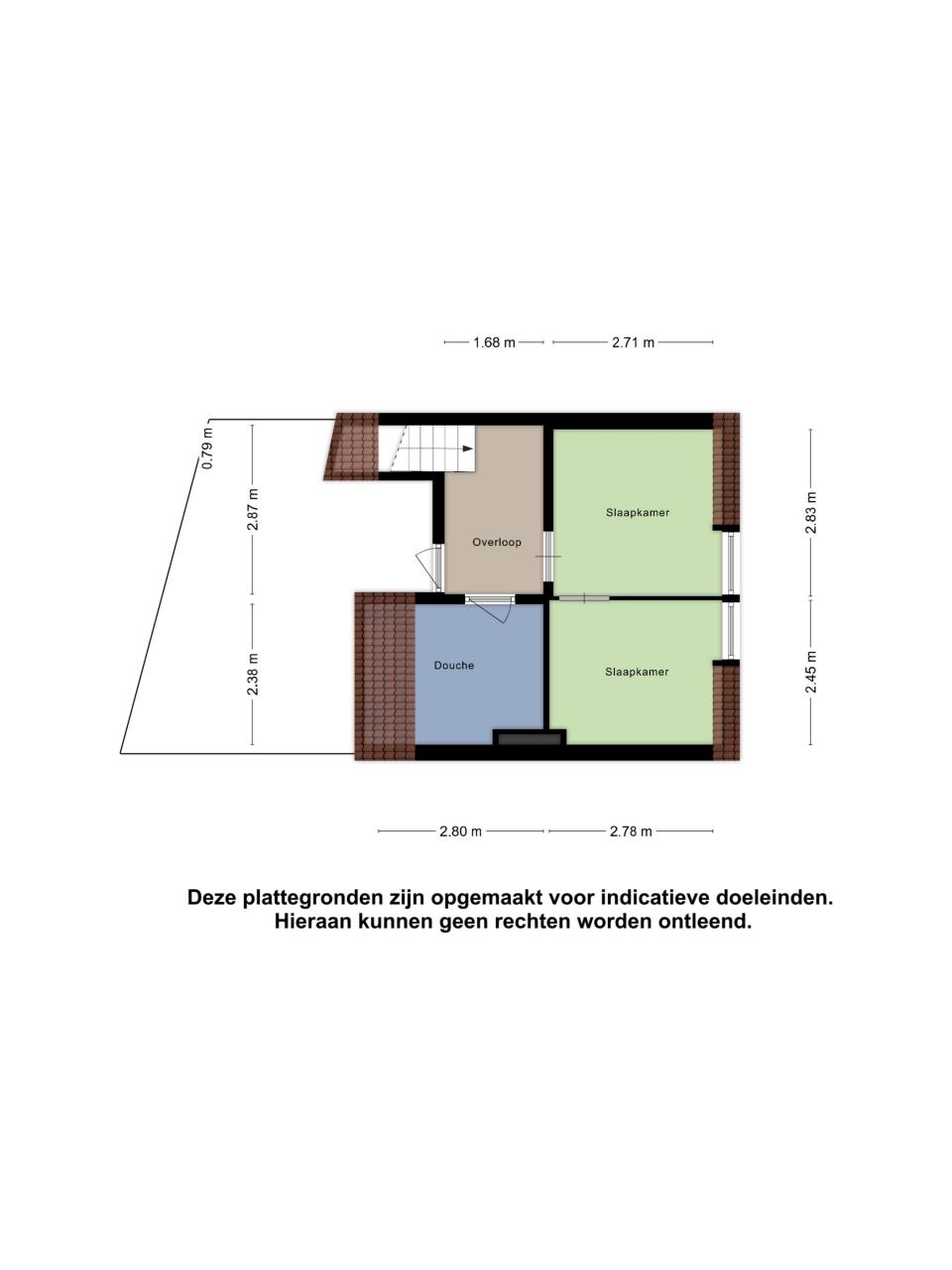Indeling bovenwoning (totaal ca. 55 m²):