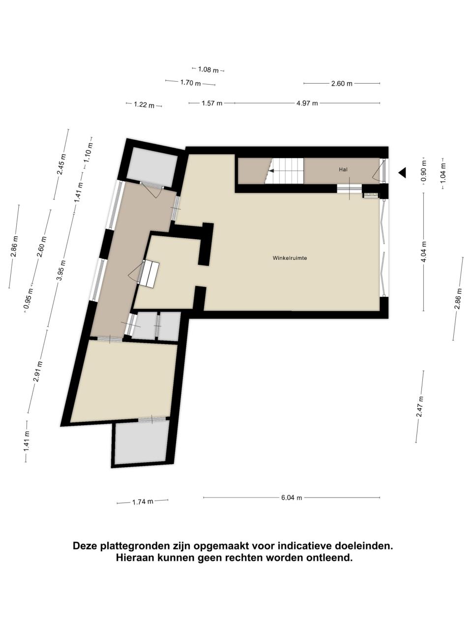 Indeling winkel (totaal ca. 53 m²):