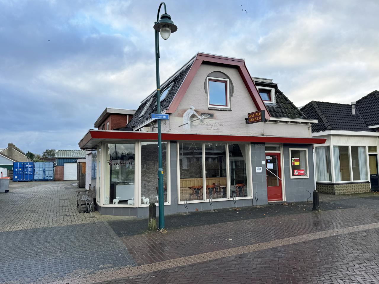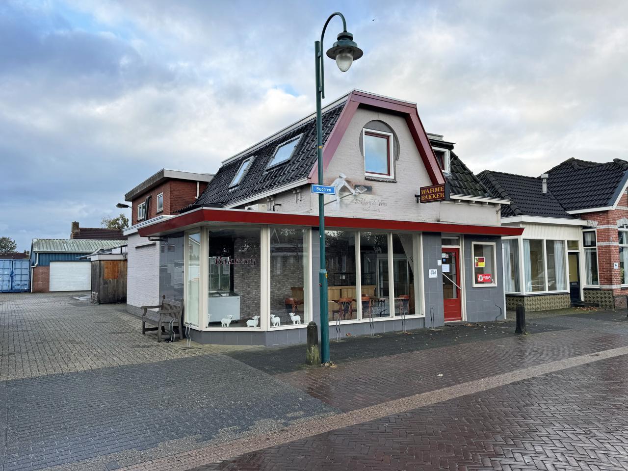 Winkelobject gelegen aan hoofdstraat de Buorren te Oudega (Sm). Het object is de laatste jaren in gebruik geweest als bakkerij.