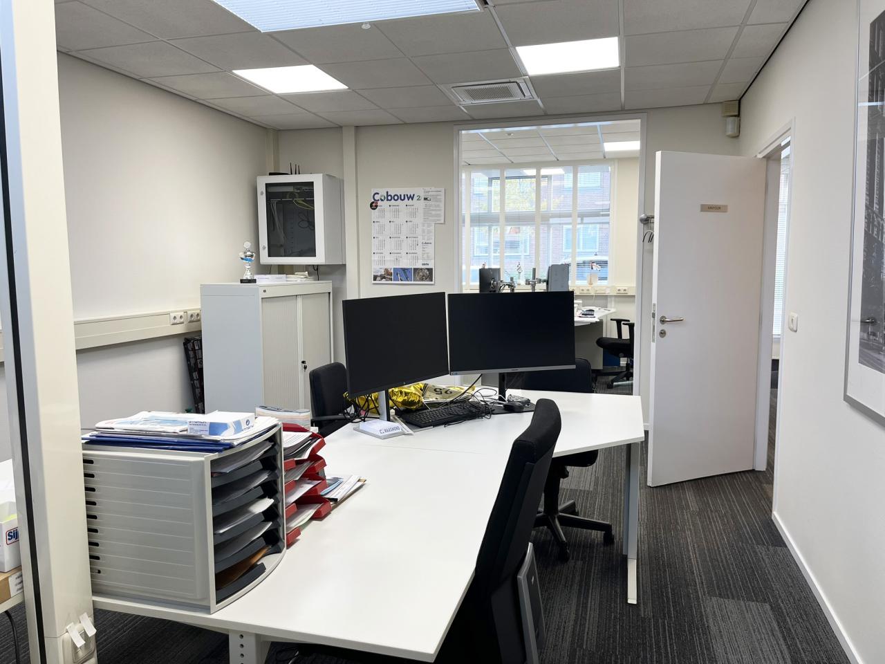 Bedrijfsruimte met kantoren te koop aan de Corellistraat te Leeuwarden.