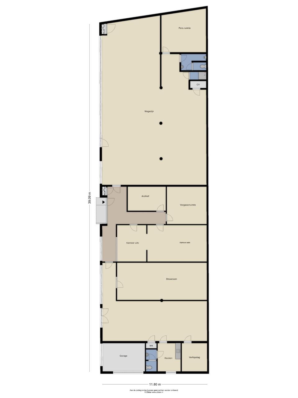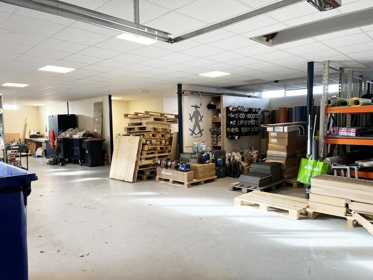 Het geheel bestaat uit 2 bedrijfsruimtes van respectievelijk 92 en 231 m², elk met een overheaddeur en 152 kantoorruimte (totaal 475m²) verdeeld over diverse vetrekken.