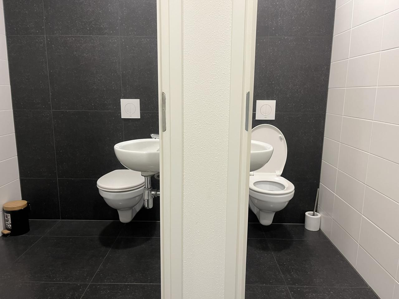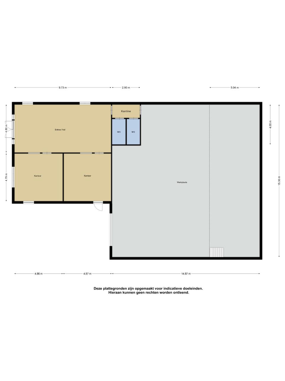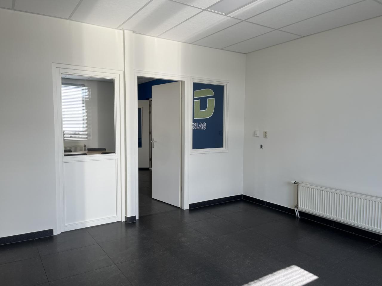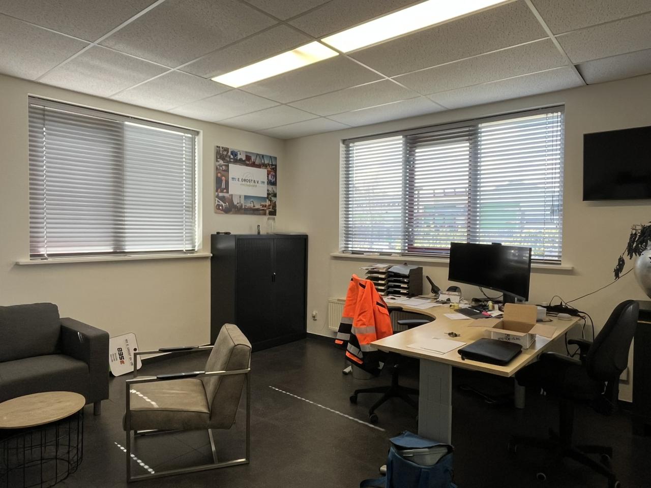 Het kantoorgedeelte bestaat uit een ruime hal met entree, toiletten en een pantry. Aan de rechterkant bevinden zich 2 kantoorruimtes, elk van ca. 23 m² groot.