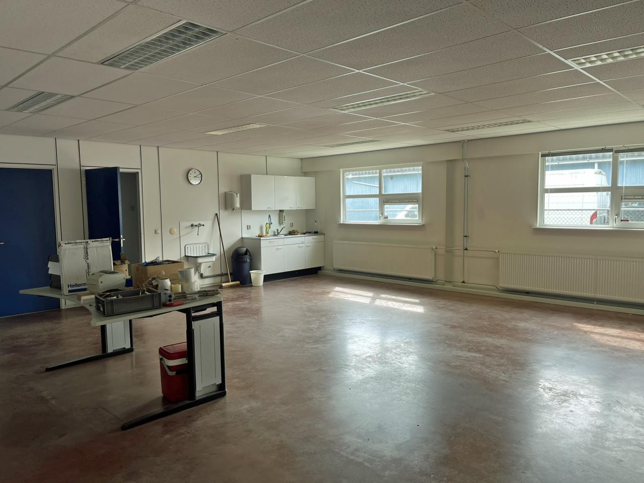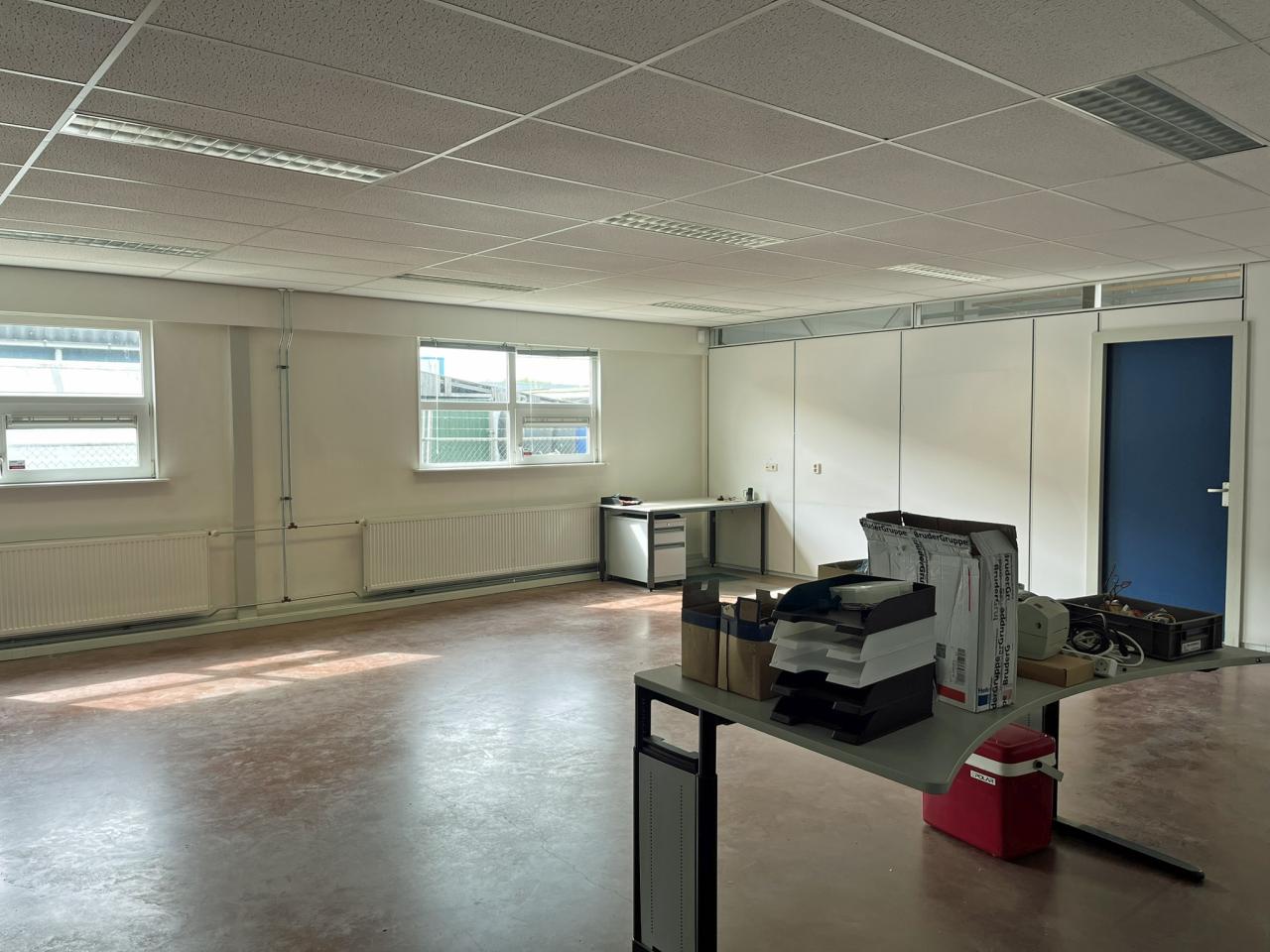 Daarnaast beschikt het geheel over een kantoorruimte en werkplaats van ca. 160 m2, welke is voorzien van een kantine met pantry en toilet en en kantoorvertrek. De kantoorruimtes zijn voorzien van systeemplafond, vloerafwerking en verlichting.