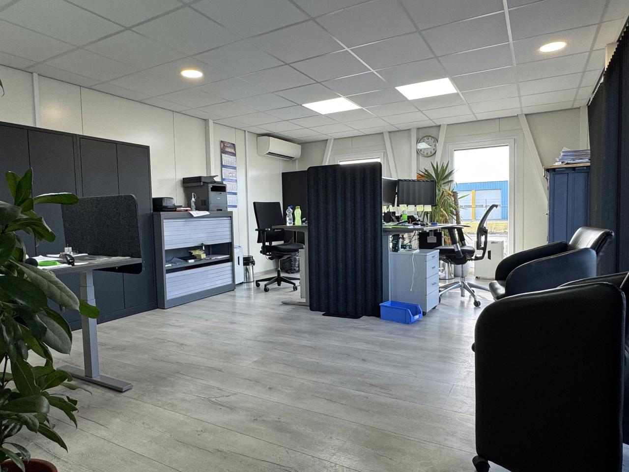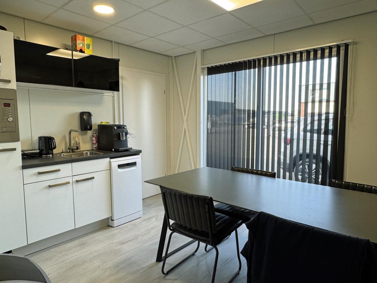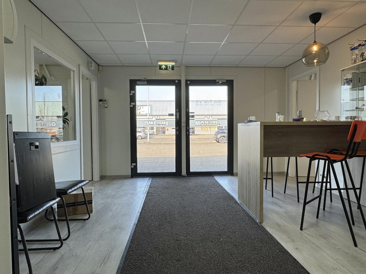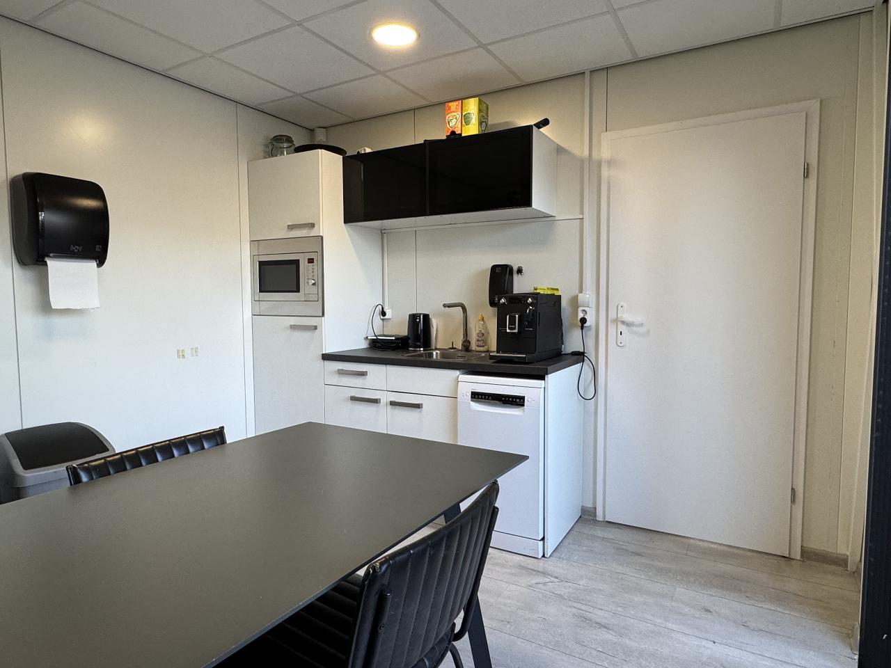 Daarnaast beschikt het geheel over een kantoorruimte van ca. 66 m2 aan de voorzijde, welke is voorzien van een kantine met pantry en toilet en kantoorvertrek. De kantoorruimtes zijn voorzien van systeemplafond, ledverlichting, airco en elektrische verwarming.