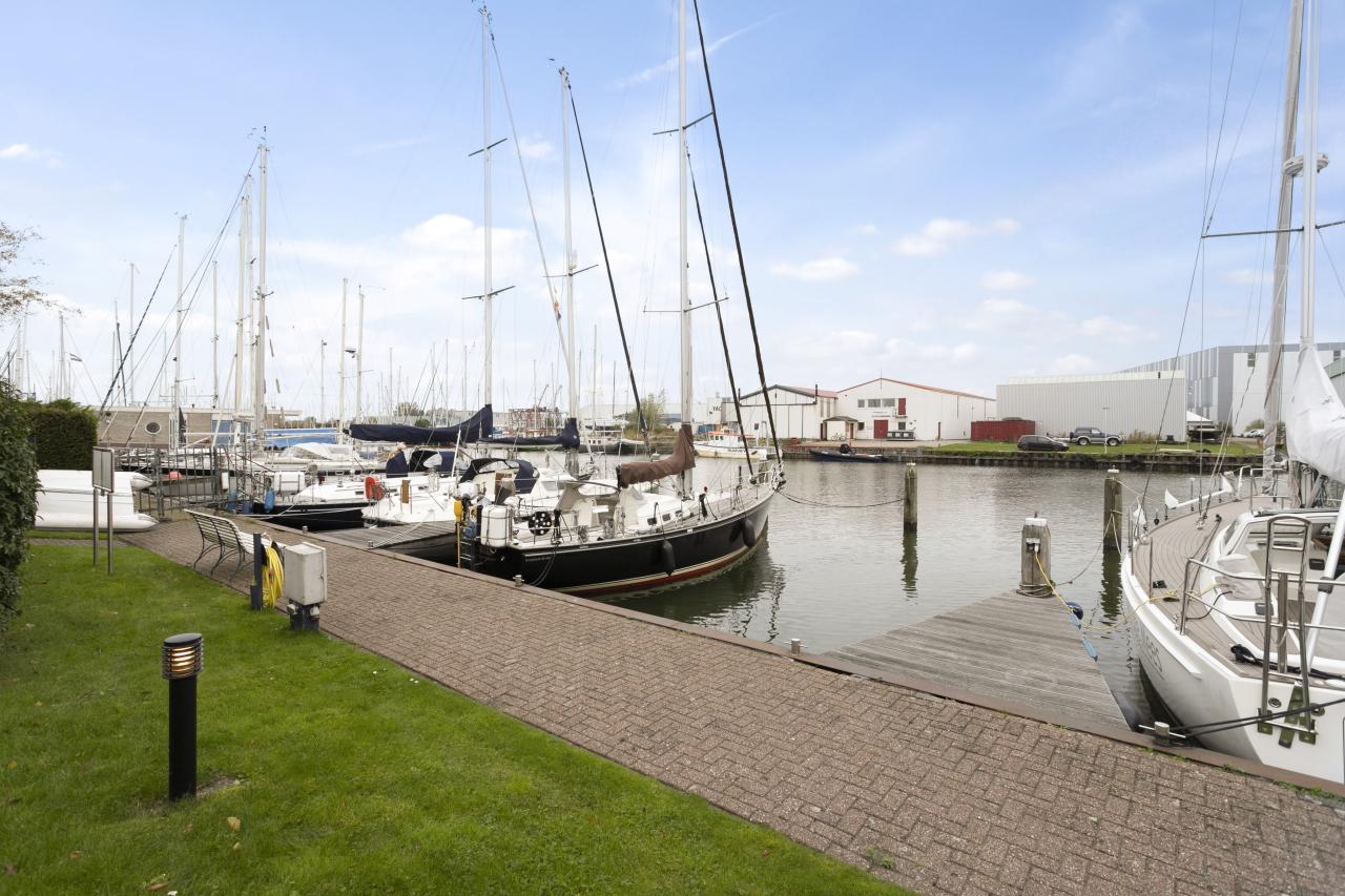 Woning: Totaal oppervlakte van ca. 171,8 m2. De woning welke op een praktische sfeervolle manier in het geheel is geïntegreerd, heeft een eigen trapopgang langs de westzijde van het pand. Bij entree komt u in een ruime hal met toilet, waar ook de vaste trap naar de zolderetage aanwezig is. De woonkamer met open keuken en deels een extra hoogte in de kap is v.v. een eiken vloer en aangrenzend balkon (ca. 13,7 m2)met uitzicht op het water. De woonkamer is opvallend licht dankzij de hoge raampartijen, waardoor er een prettige en open sfeer ontstaat. Verder biedt de woning nog drie ruime slaapkamers en een badkamer v.v. vloerverwarming, ruim ligbad en douche. Boven een deel van de woning ligt een royale zolderetage (ca. 59,6 m2) met veel bergmogelijkheden en een hobbyruimte. Deze zou met wat aanpassingen kunnen dienen als extra slaapkamer.