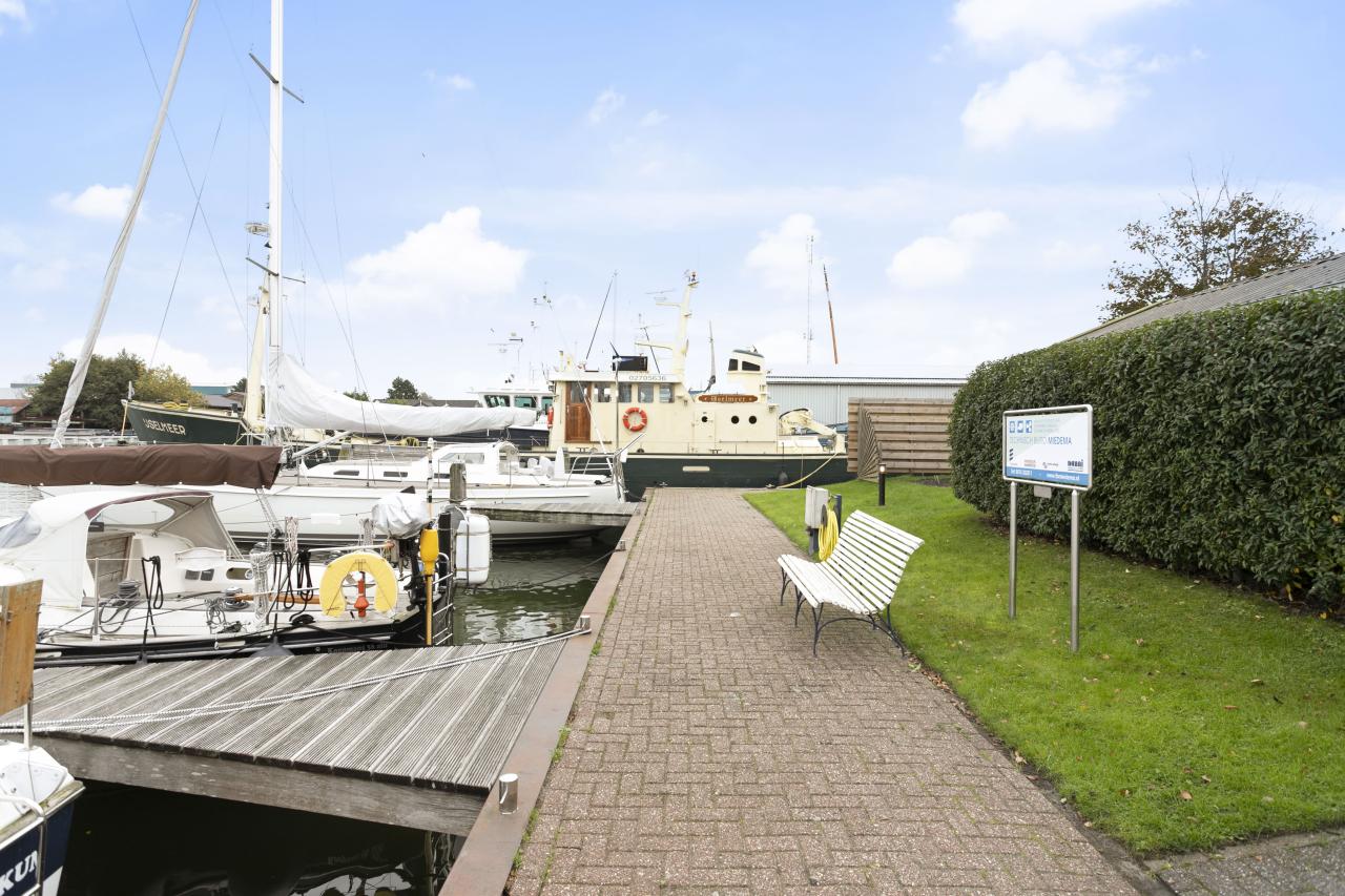 Ligplaatsen: Grenzend aan het achterterrein ligt een deel eigen water. Hier bevinden zich vier ligplaatsen van 15 x 5 meter die zijn voorzien van zgn. vingersteigers. Deze ligplaatsen hebben walstroom (220v en 380v), een wateraansluiting en sanitaire voorzieningen in het hoofdgebouw.