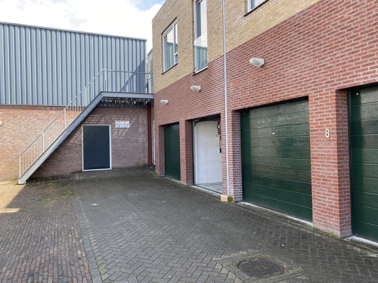 De garagebox (unit 8) heeft een oppervlakte van ca. 21 m² en is voorzien van een elektrische overheaddeur en elektra. De vrije hoogte bedraagt ca. 320 cm.