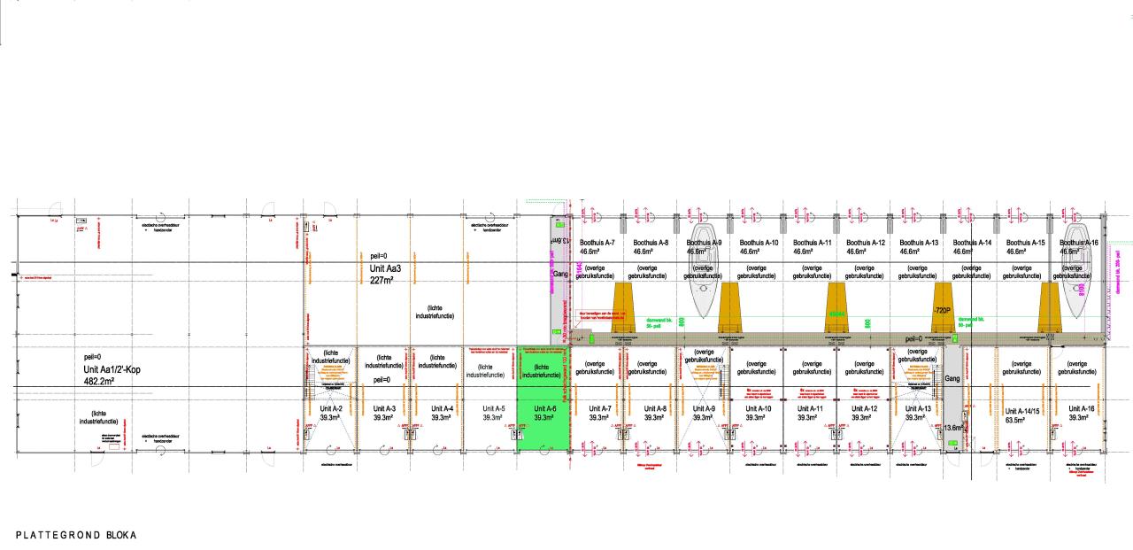 De unit heeft een totaaloppervlak van ca. 39 m² en beschikt over een overheaddeur van 320x400 (hxb), met een geïntegreerde loopdeur. De hoogte in de unit bedraagt ca. 600 cm.