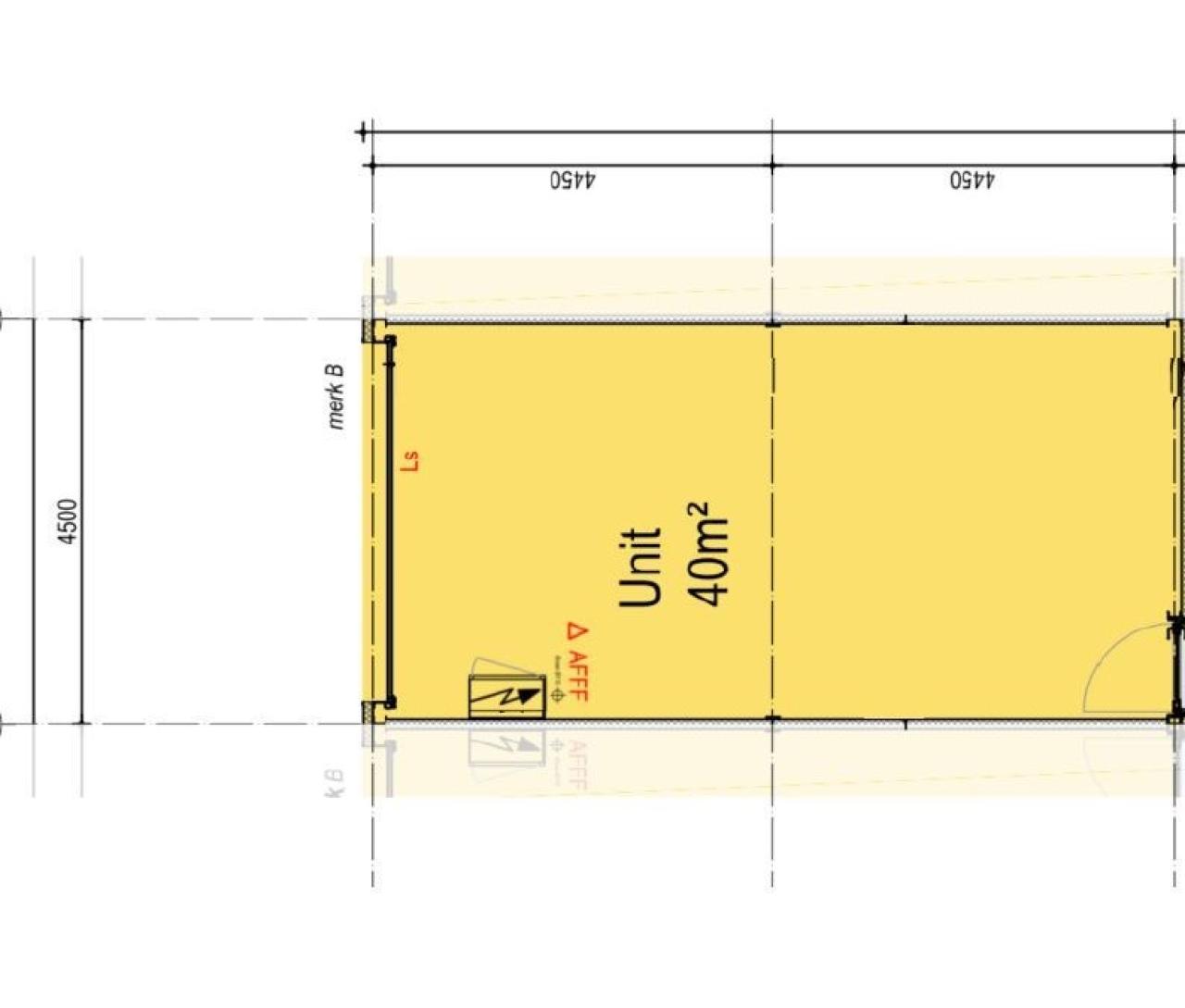 De unit heeft een totaaloppervlak van ca. 39 m² en beschikt over een overheaddeur van 320x400 (hxb), met een geïntegreerde loopdeur. De hoogte in de unit bedraagt ca. 600 cm.