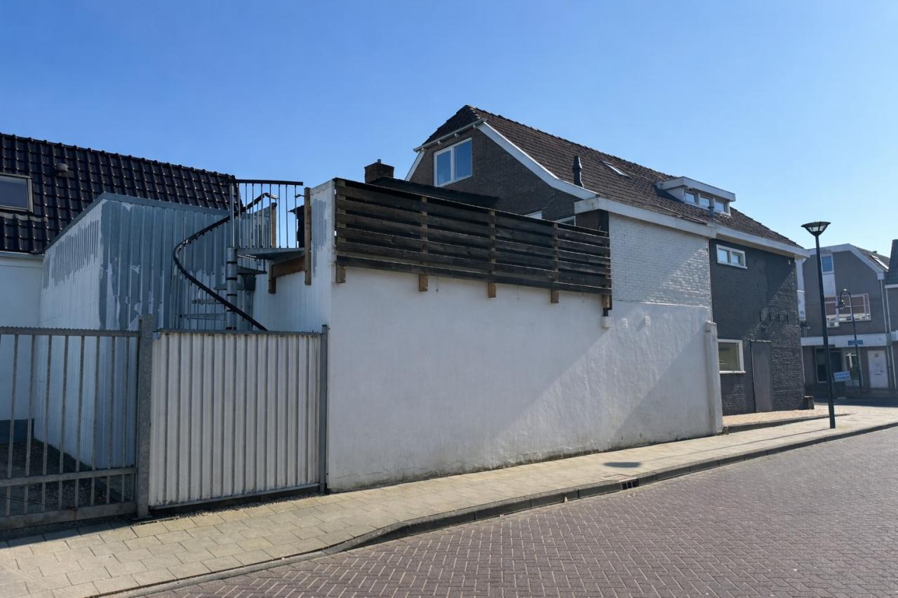 Winkelruimte met zelfstandige bovenwoning in het centrum van Drachten. Het achterterrein is volledig omheind en afsluitbaar doormiddel van een elektrisch schuifhek.