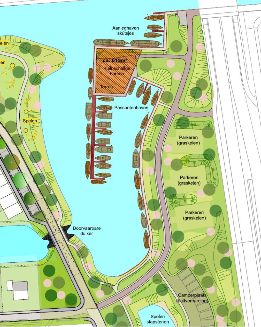 Aan de Jelle Plantingstraat in woonwijk langs de Drachtstervaart te Drachten wordt momenteel gebouwd aan de laatste fase. Grenzend aan de laatste fase wordt een nieuwe passantenhaven aangelegd. In deze passantenhaven Parkhaven bieden wij namens de eigenaar een bouwkavel met bestemming Horeca aan. De kavel biedt ruimte voor een horecagelegenheid op een zichtlocatie, voor zowel een dag- als avondfunctie. Tevens is de combinatie met logiesverstrekking toegestaan.