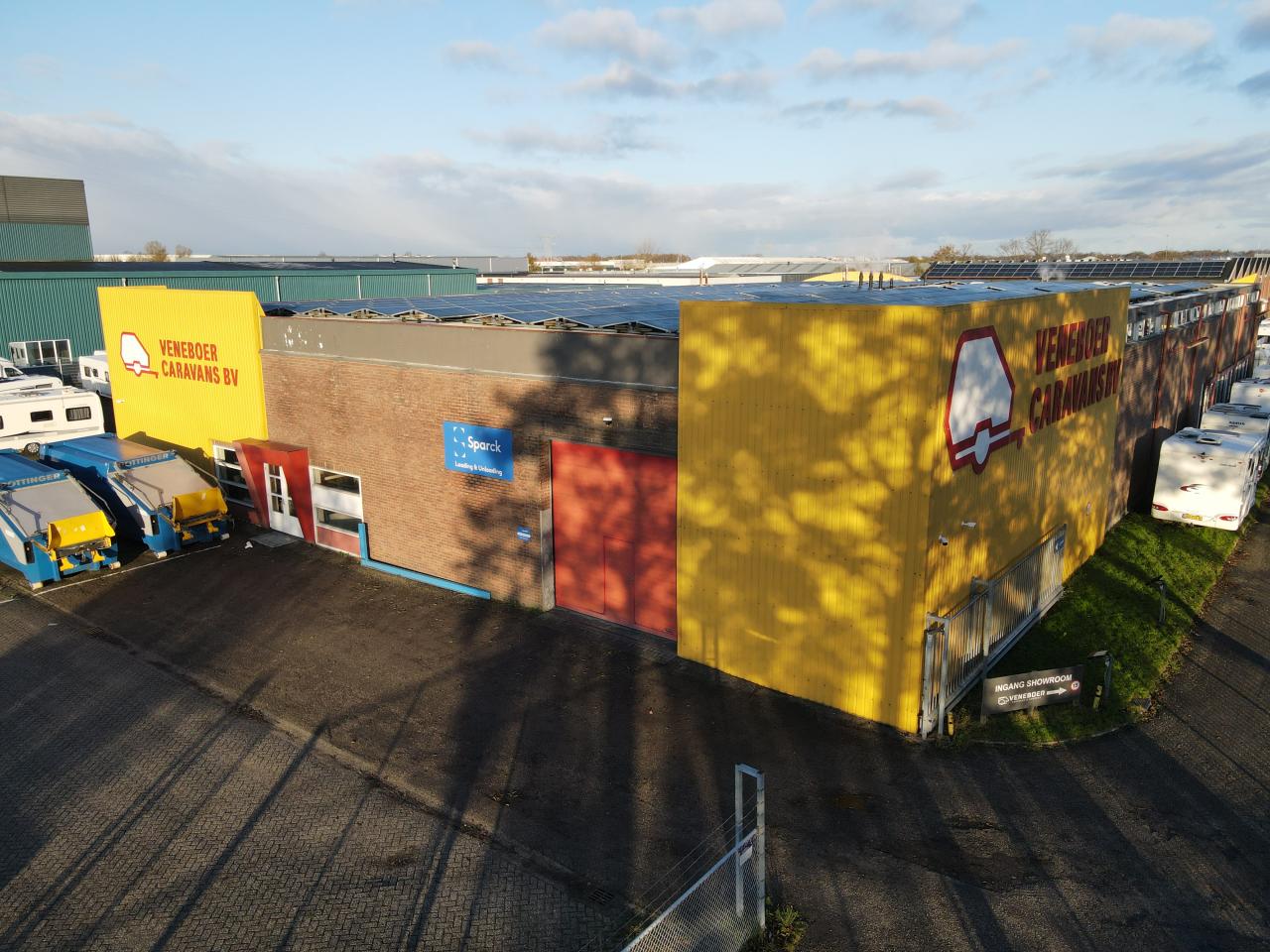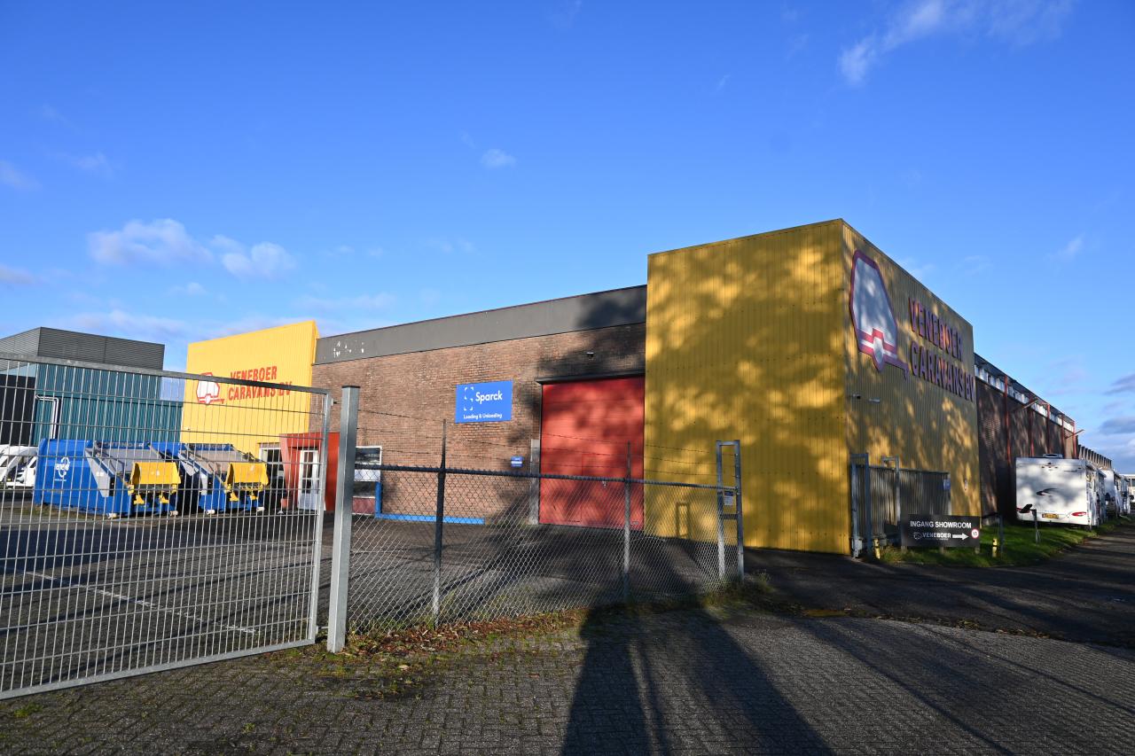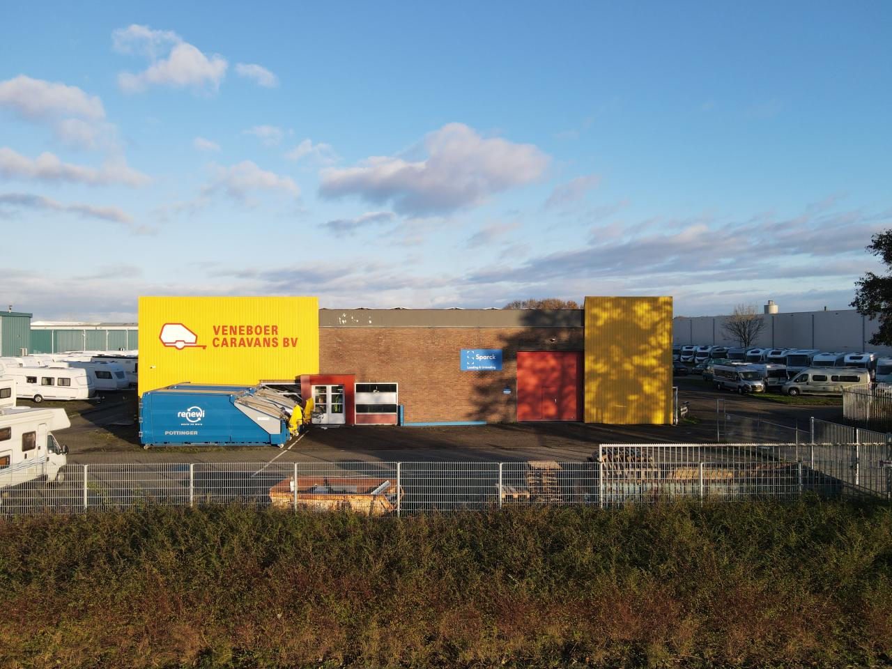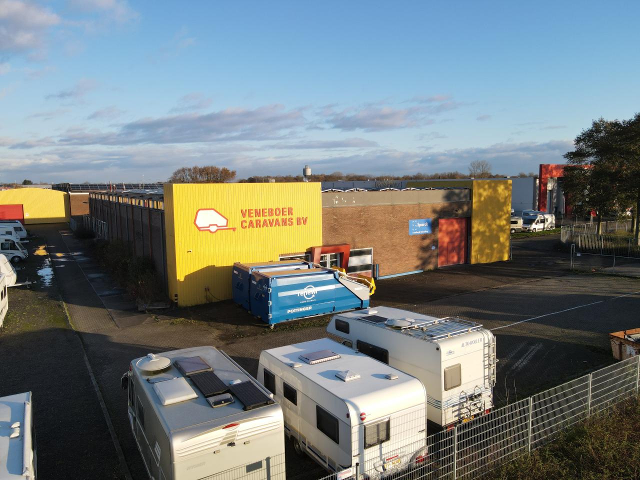 De aangeboden bedrijfshal maakt deel uit van een groter geheel waar gevestigd is Veneboer Caravans.