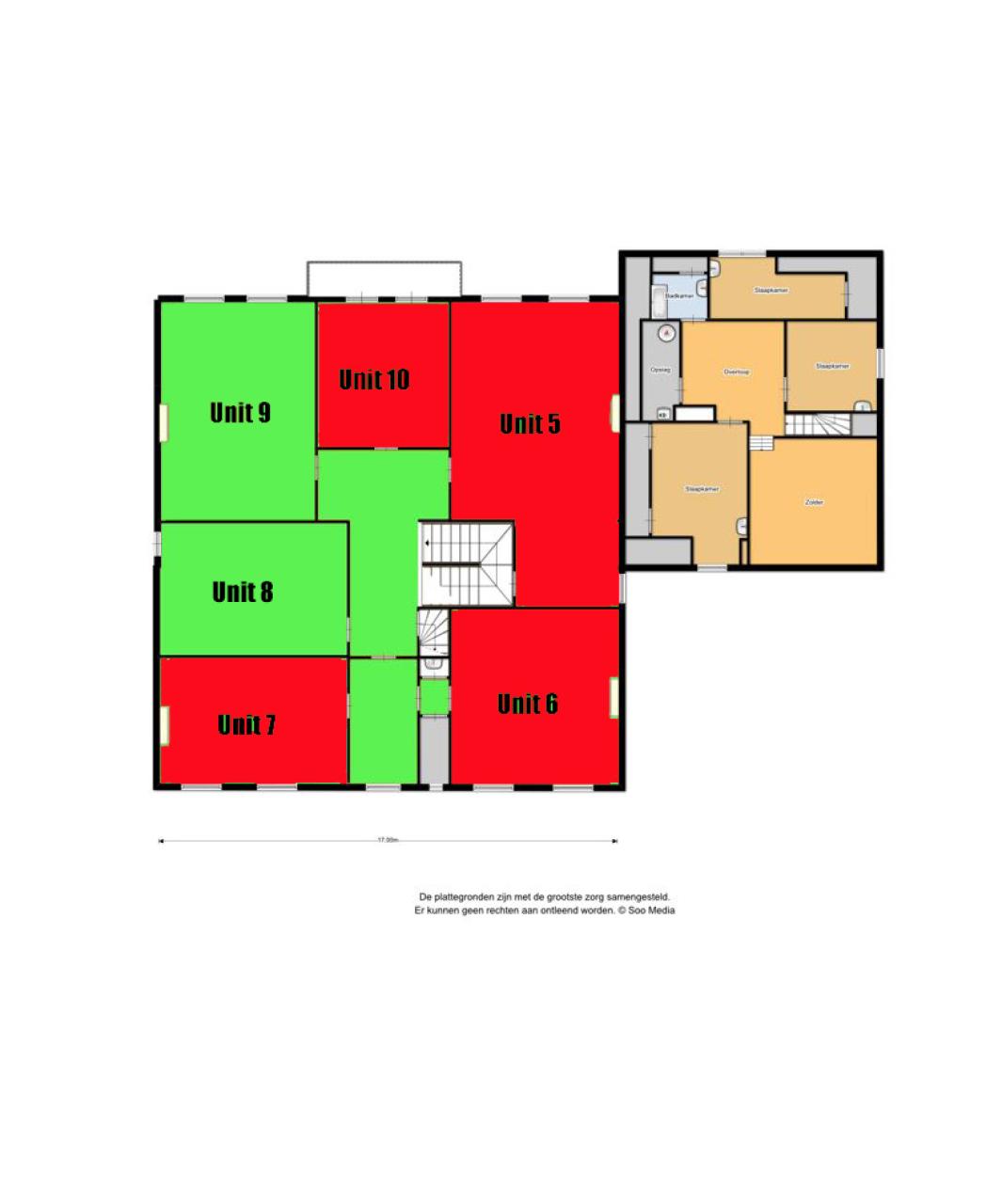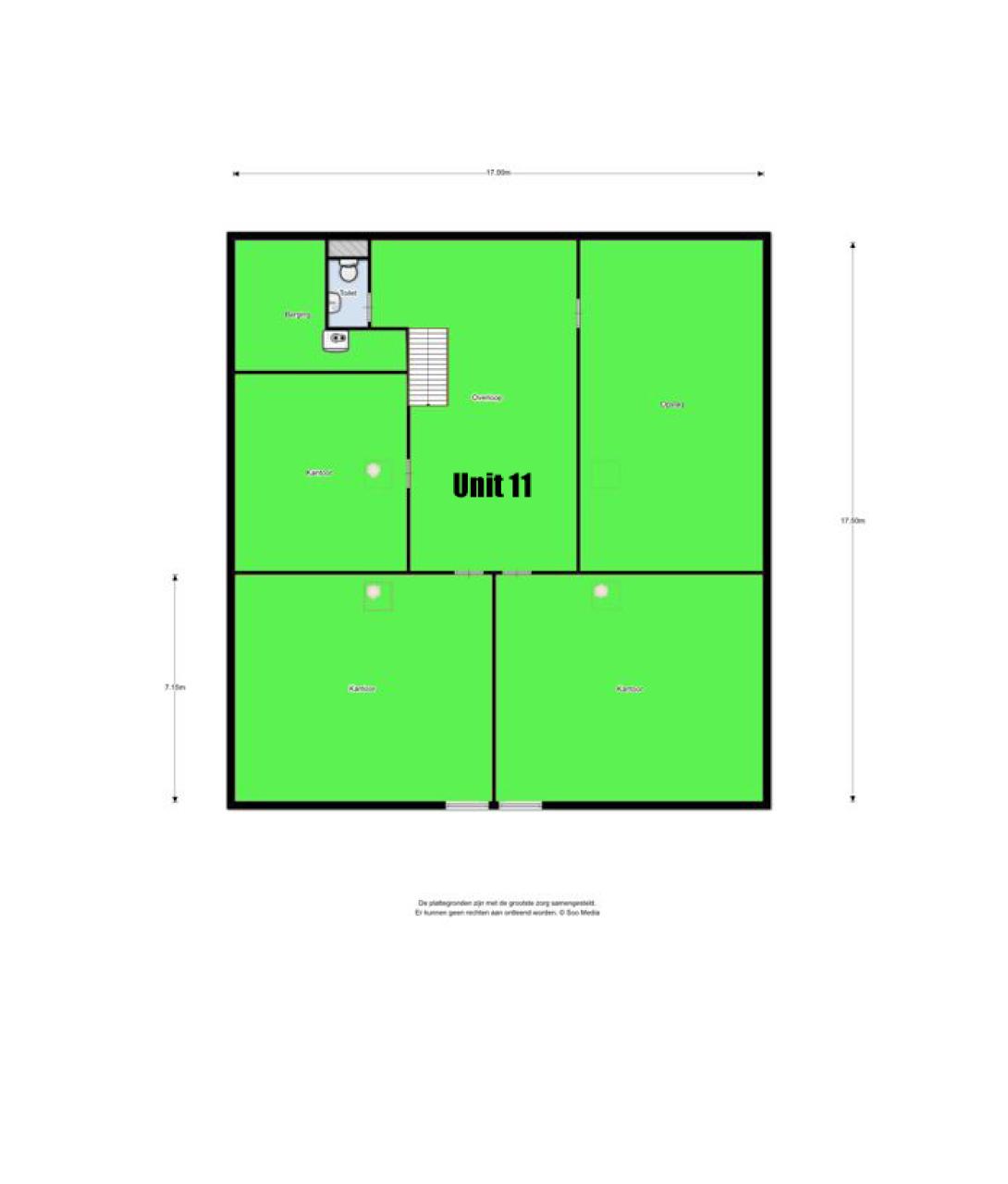 Momenteel bieden wij diverse kantoorunits te huur aan in het hoofdgebouw, variërend van ca.19 tot 44 m², verdeeld over de begane grond en de eerste etage. De begane grond beschikt over een gezamenlijke keuken en toiletgroep. De eerste etage beschikt over een toilet.