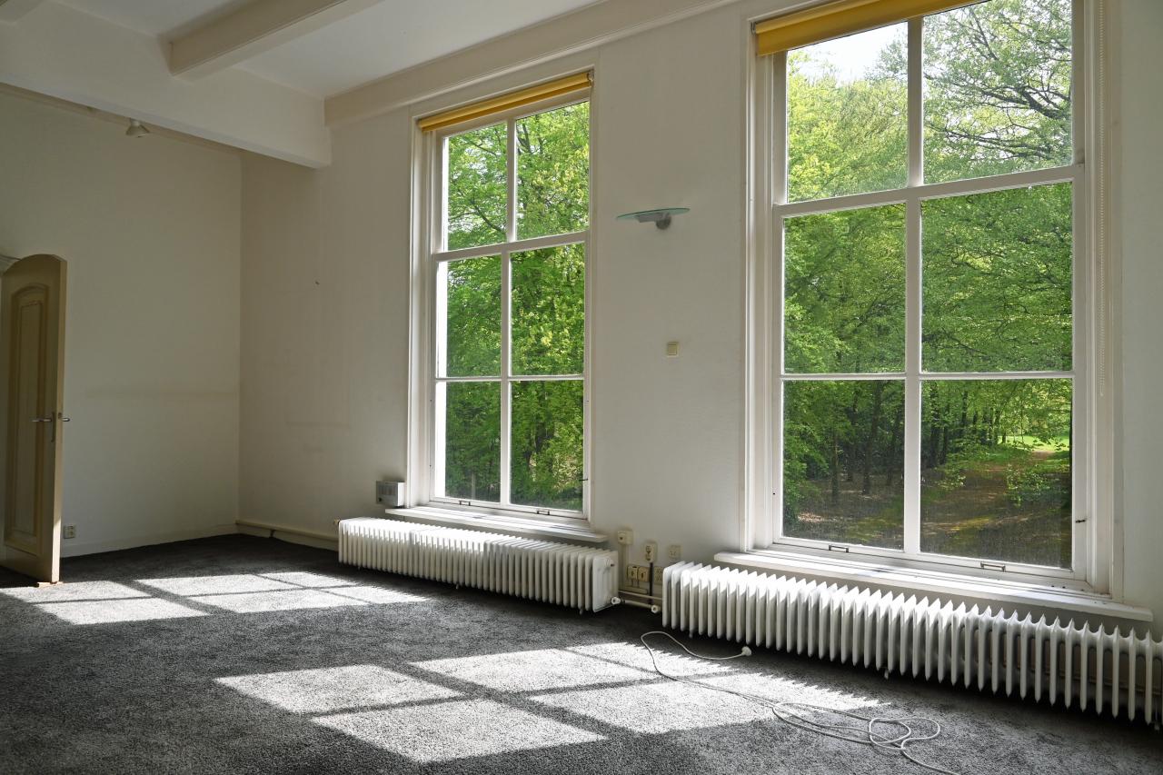 Via de (hoofd)entree zijn de diverse vertrekken en de bordestrap naar de eerste en tweede verdieping te bereiken. Door de hoge plafonds (ca. 380 cm) en ramen is er een hoop lichtinval. Vele authentieke details uit de 19e eeuw, zoals o.a. de sierplafonds en de schouwen zijn door de jaren heen bewaard gebleven in dit prachtige object. Elke ruimte heeft uitzicht op het bosrijke en fraai aangelegde park, welke in bezit is van Staatsbosbeheer.